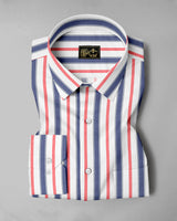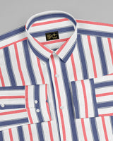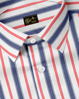 Step into casual sophistication with the Coastal Stripes Men's Button-Up Shirt. Featuring a striking vertical stripe pattern in bold navy blue and vibrant red on a crisp ivory background, this shirt brings a fresh nautical charm to your wardrobe. Crafted from lightweight, breathable fabric, it’s perfect for weekend strolls, seaside dinners, or a laid-back day in the city. The relaxed fit, classic collar, and long sleeves make it versatile enough to style tucked in or worn loose over your favorite jeans.