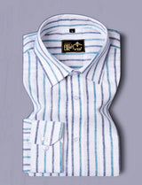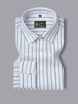 Treat yourself to luxury by wearing this Porto Gray With Blue Stripe Oxford Cotton Formal Shirt from the hamercop. Crafted from premium Oxford cotton, this shirt offers both comfort and durability. This formal shirt is designed to be your go-to choice for a wide range of formal occasions. Whether you're attending a business meeting, a black-tie event, or a formal dinner, the Porto Gray With Blue Stripe Oxford Cotton Formal Shirt will make you look and feel exceptional. The high-quality Oxford cotton not only offers a luxurious feel but also ensures longevity and resistance to wrinkles, ensuring that you look sharp throughout the day. Pair this shirt with a charcoal gray or navy suit for a classic and sophisticated look that commands attention and respect.