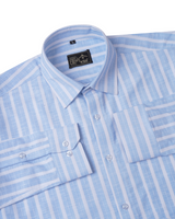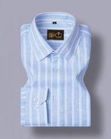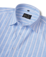 A Scuba Blue With White Stripe Dobby Cotton Formal Shirt combines a classic striped pattern with a refined texture, perfect for a smart-formal look. The alternating blue and white stripes create a clean, crisp appearance, ideal for professional settings. With its breathable and soft cotton material, it ensures comfort throughout the day. The shirt typically comes with a regular collar, full and half sleeves, and a regular fit, making it versatile and easy to pair with jeans or chinos for a stylish ensemble.