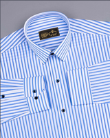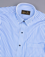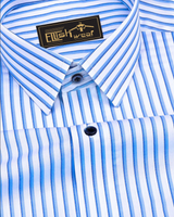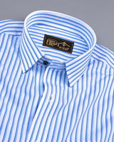 Stay updated with the latest trendy fashion trends by owning this Stoffy Blue With White Stripe Formal Cotton Shirt is a striking piece that combines classic elegance with modern style. Crafted from high-quality cotton, this shirt offers both comfort and style, making it a staple piece in any wardrobe. The shirt features a regular fit, regular collar, full and half sleeves. The cotton fabric is breathable and comfortable, making it suitable for all-day wear without compromising on style. Whether you're attending a business meeting, a formal event, or simply want to look sharp for a special occasion, the Blue Formal Shirt is an excellent choice.