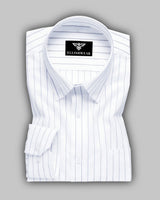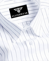 "Elevate your formal style with this pure cotton shirt featuring sharp navy blue stripes on a crisp white base. Designed with a tailored fit, it ensures comfort without compromising on elegance. The breathable cotton fabric keeps you fresh all day, making it perfect for long office hours or formal gatherings. Its versatile design pairs effortlessly with trousers or chinos, giving you a polished and confident look every time."