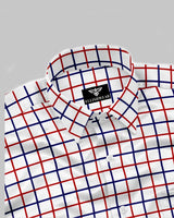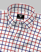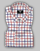 Tailored for modern elegance, the Clemence White Cotton Shirt features a bold red and blue grid check pattern set against a crisp white base. Crafted from premium-quality cotton, the fabric offers a smooth texture with a lightweight yet structured feel, ensuring lasting comfort and durability.