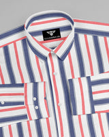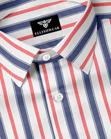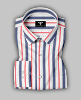 Step into casual sophistication with the Coastal Stripes Men's Button-Up Shirt. Featuring a striking vertical stripe pattern in bold navy blue and vibrant red on a crisp ivory background, this shirt brings a fresh nautical charm to your wardrobe. Crafted from lightweight, breathable fabric, it’s perfect for weekend strolls, seaside dinners, or a laid-back day in the city. The relaxed fit, classic collar, and long sleeves make it versatile enough to style tucked in or worn loose over your favorite jeans.