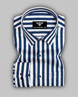 royel Blue and Bright White Striped Subtle Sheen Super Soft Premium Cotton Designer Shirt