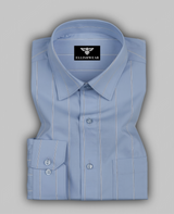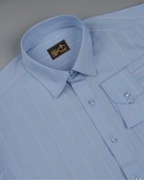 Step into effortless sophistication with the Skyline Blue with White Stripe Premium Cotton Shirt. Crafted from fine cotton, this shirt features a fresh light blue base accented by crisp white stripes, creating a clean and versatile look. With its soft texture and breathable design, it ensures comfort throughout the day—whether at the office, formal gatherings, or casual smart outings. A timeless essential for the modern gentleman, this shirt blends elegance with everyday wearability.