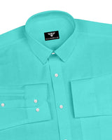 Turquoise Green Linen Cotton Formal Solid Shirt
