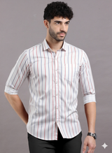 Crafted from premium grade cotton, this striped shirt exudes sophistication with its rugged yet lightweight structure. Engineered for durability and comfort, it features a sharply tailored silhouette and a front utility pocket delivering elevated function and bold, uncompromising style for the discerning wearer.